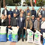 Süt soğutma tankı desteğinin ardından, İvrindi’de düzenlenen törenle çiftçilere süt otu (Ryegrass) ve 5’li karışım yem bitkisi tohumu dağıtıldı.