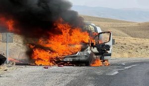 Van’ın Kurubaş Geçidi güzergâhında seyir halinde olan bir yolcu minibüsü, henüz belirlenemeyen bir nedenle motor kısmından alev alarak kısa sürede tamamen yandı. Sürücünün hızlı müdahalesi sayesinde araçtaki yolcular tahliye edildi ve büyük bir facia önlenerek can kaybı yaşanmadı.