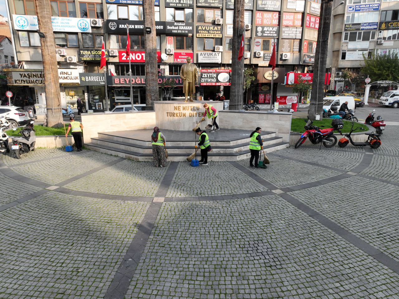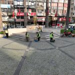 Cumhuriyet Meydanı başta olmak üzere kent merkezindeki yoğun bölgelerde sabahın erken saatlerinde başlayan kapsamlı temizlik operasyonları gün boyunca sürüyor. Aynı çalışmaların diğer mahallelerde de planlı şekilde devam 7 gün 24 saat çalışma esasına göre deva ediyor.