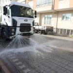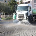 Yol ve süpürge araçlarıyla sokakların yıkanması, cadde ve kaldırımlardaki çöplerin toplanması, park ve bahçelerde temizlik ve bakım yapılması, çöp konteynerlerinin yıkanarak dezenfekte edilmesi çalışmaları titizlikle devam ediyor.